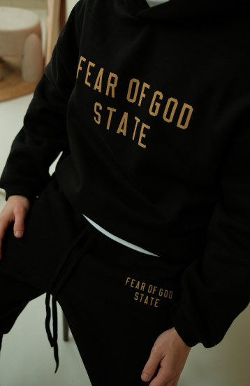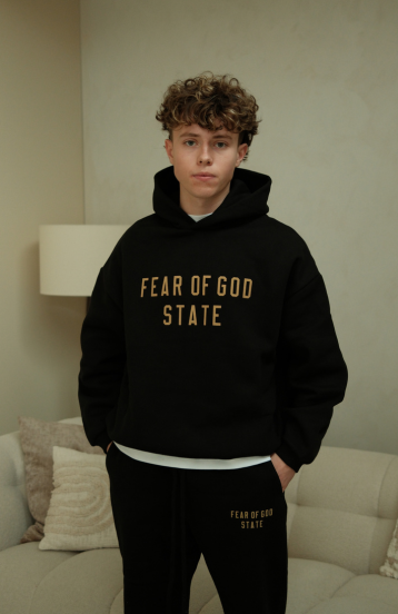 Este conjunto completo consta de una sudadera con capucha y joggers a juego, ambos fabricados con felpa de alta calidad para una sensación agradablemente suave y cálida. La sudadera está diseñada con un corte oversize, equipada con capucha ajustable, puños acanalados y un clásico bolsillo canguro. La característica impresión "1977" en el pecho – un homenaje al año de nacimiento de Jerry Lorenzo – refuerza el icónico look ESSENTIALS que combina minimalismo con reconocimiento.