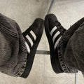 Le design iconique comprend bien sûr la reconnaissable coque en caoutchouc shell-toe, qui assure durabilité et ce style rétro unique. Les 3 bandes blanches et le contrefort du talon forment un contraste net avec le noir, tandis que le logo “Superstar” doré sur le côté ajoute une touche de raffinement premium.